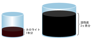 従来の活性炭に比べ、使用量・酸化消耗度に優れておりランニングコストの低減が見込まれますと共に廃棄物の低減にも役立ちます