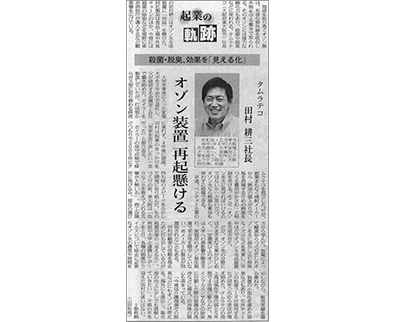 株式会社タムラテコはオゾン装置専門メーカーとして皆様方にお支えいただき約20年の経験を積んでまいりました。ただ空気を清潔にするだけでは無く、触れている物品まで綺麗にする事が可能で、人だけで無く環境にも優しい。唯一の手段はオゾンと私どもは考えています。