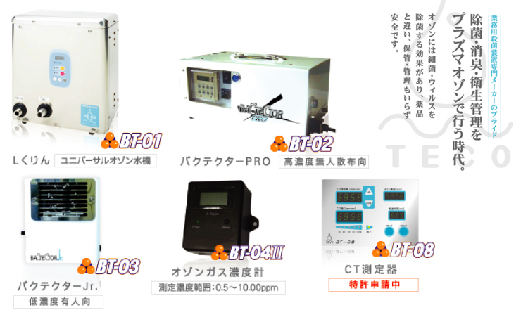 全国の消防本部にも当システムは納入されており(新型インフルエンザ対策)、空気中の菌はもちろん、大腸菌、音色ブドウ球菌も確実に除菌を行えます。