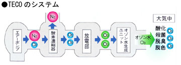 | テコ独自のオゾナイザーの開発により、高濃度のオゾンガスを生成します。 |