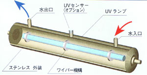 | 本体は高級特殊ステンレスを使用。、タンク内は電解研磨仕上げで除菌効果が高く、清潔で長持ちします。ランプ寿命は8,800時間。 |